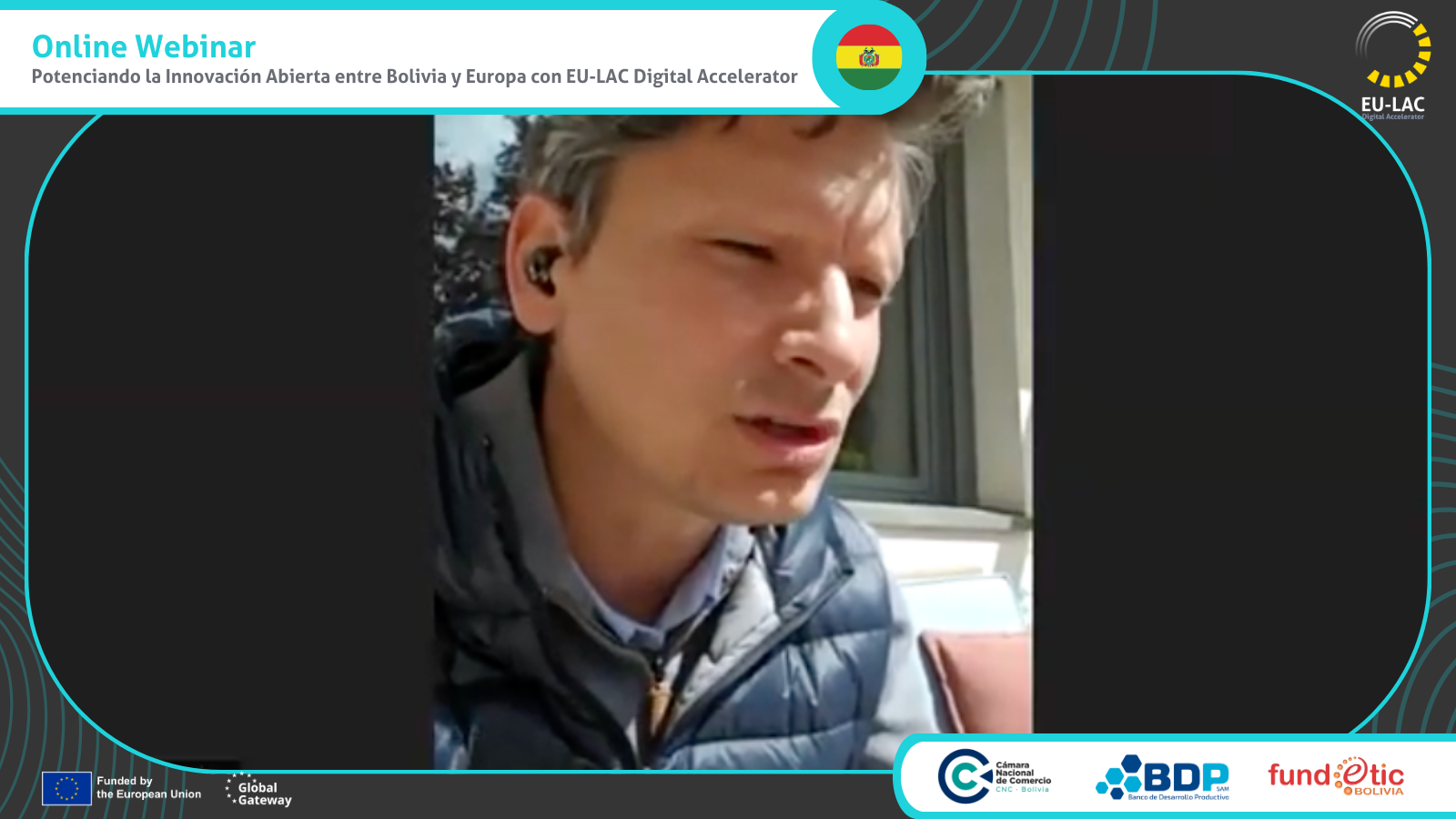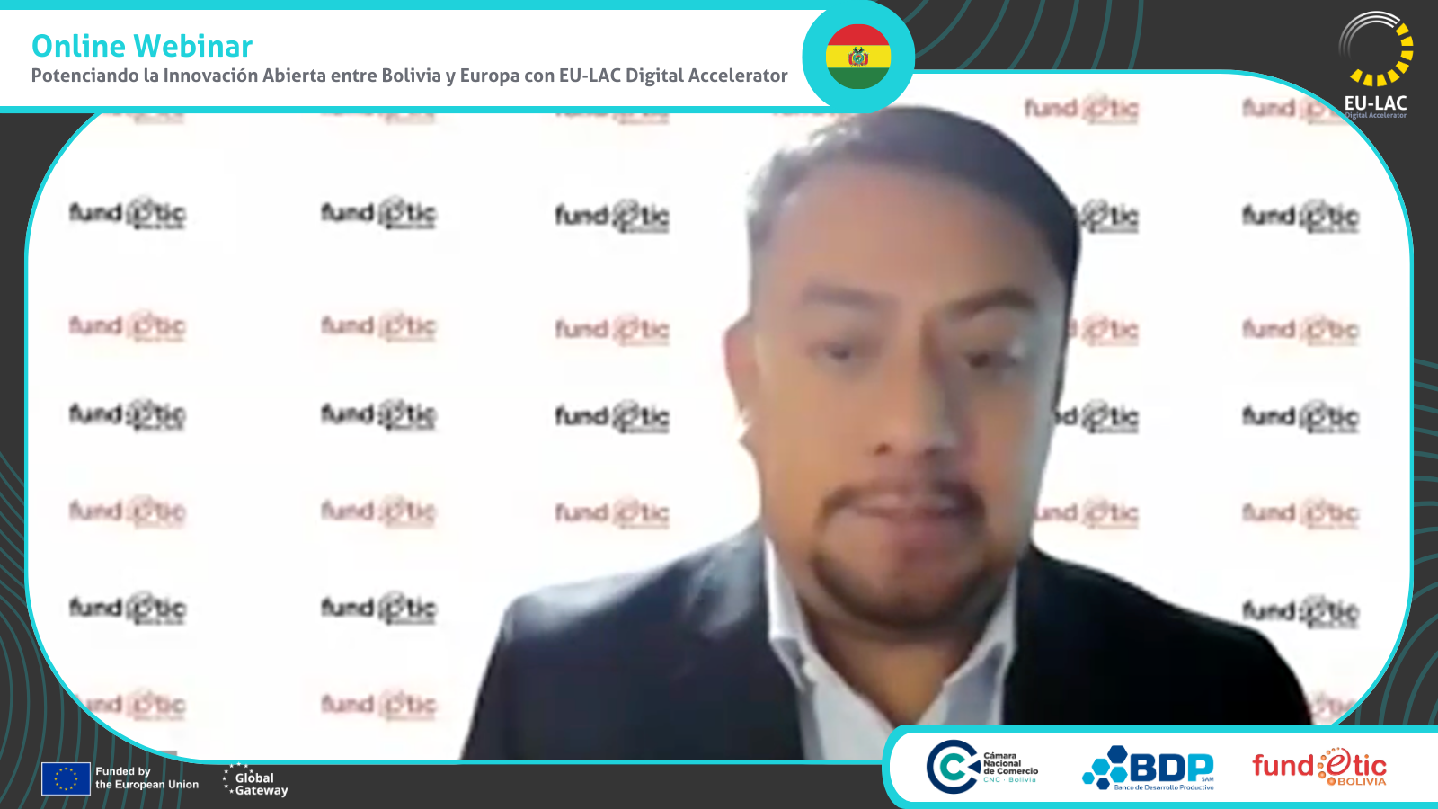 EU-LAC Digital Accelerator continúa promoviendo la colaboración y la innovación abierta en América Latina, Europa y el Caribe. En esta ocasión, buscando fortalecer los lazos entre Bolivia y Europa, celebraron un webinar el 2 de mayo de 2024. En colaboración con la Cámara Nacional de Comercio (CNC), el Banco de Desarrollo Productivo, FUNDETIC BOLIVIA y la delegación de la Unión Europea en Bolivia, este evento virtual reunió a más de 40 participantes con el objetivo de fomentar alianzas empresariales que impulsen el desarrollo digital y el bienestar en el país.