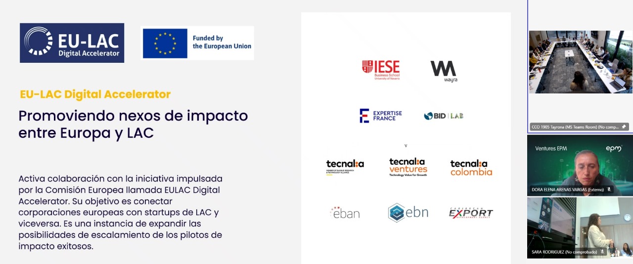 El pasado viernes 17 de mayo de 2024, Wayra Hispam, representado por Sebastián González y Melissa Rojas, organizó con el apoyo de BID LAB un encuentro con corporativos. Tanto Wayra Hispam como BID LAB son socios del programa EU-LAC Digital Accelerator. El evento se celebró presencialmente en Bogotá y reunió a un total de 11 corporativos. Otros 3 tuvieron la oportunidad de conectarse online y seguir las presentaciones desde otros puntos de la región.