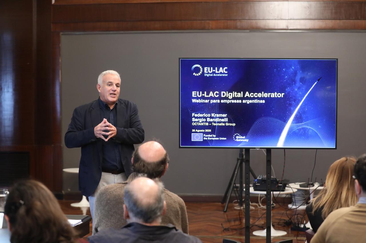 On 16 September 2025, EU-LAC Digital Accelerator, in collaboration with the Ministry of Economy of Argentina, held the on-site workshop “Internationalise your company by offering solutions for digital transformation”, an event designed to provide innovative startups and SMEs with concrete tools to expand into new markets and strengthen ties with Europe and the Caribbean.
