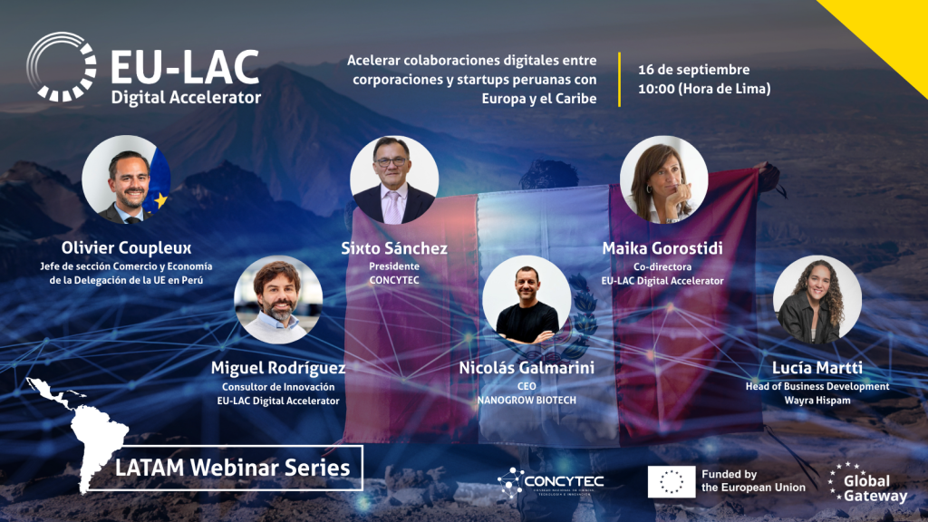 La Delegación de la Unión Europea en Perú, en colaboración con EU-LAC Digital Accelerator, te invita a un webinar para empresas peruanas con oportunidades únicas de colaboración e innovación abierta junto a corporaciones y startups de Europa y el Caribe.